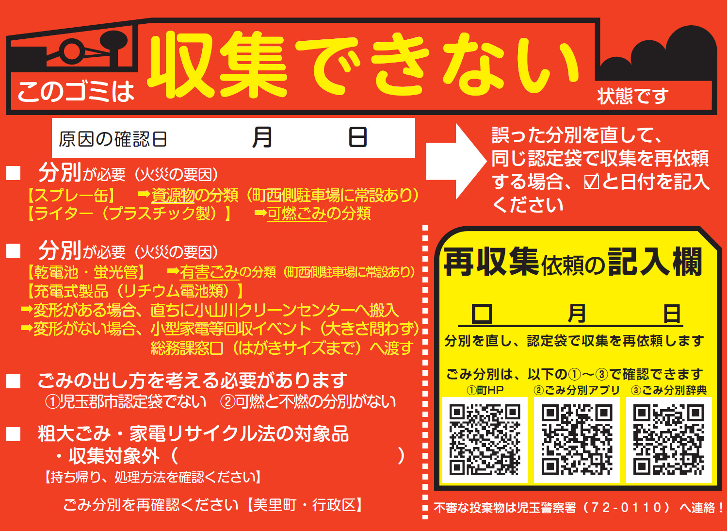 誤って排出された方は、分別誤りを直してください。
