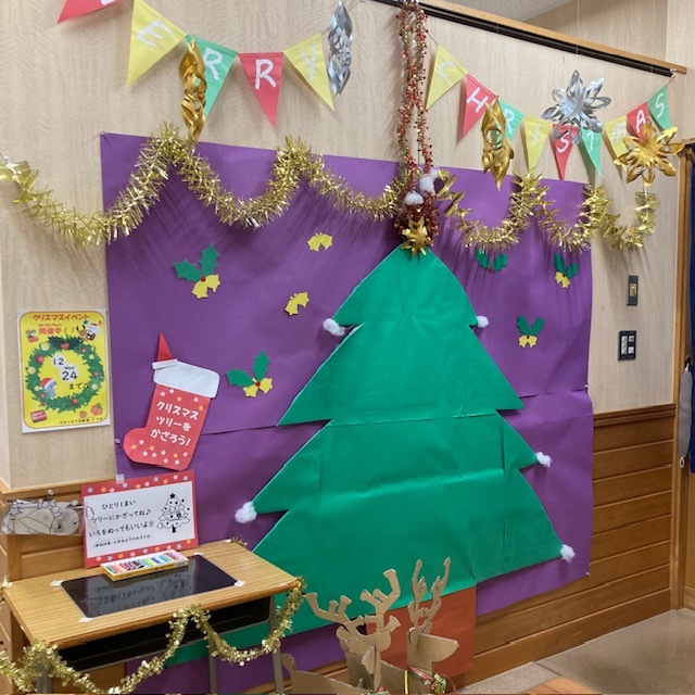 図書館の入口にクリスマスツリーが登場しました!